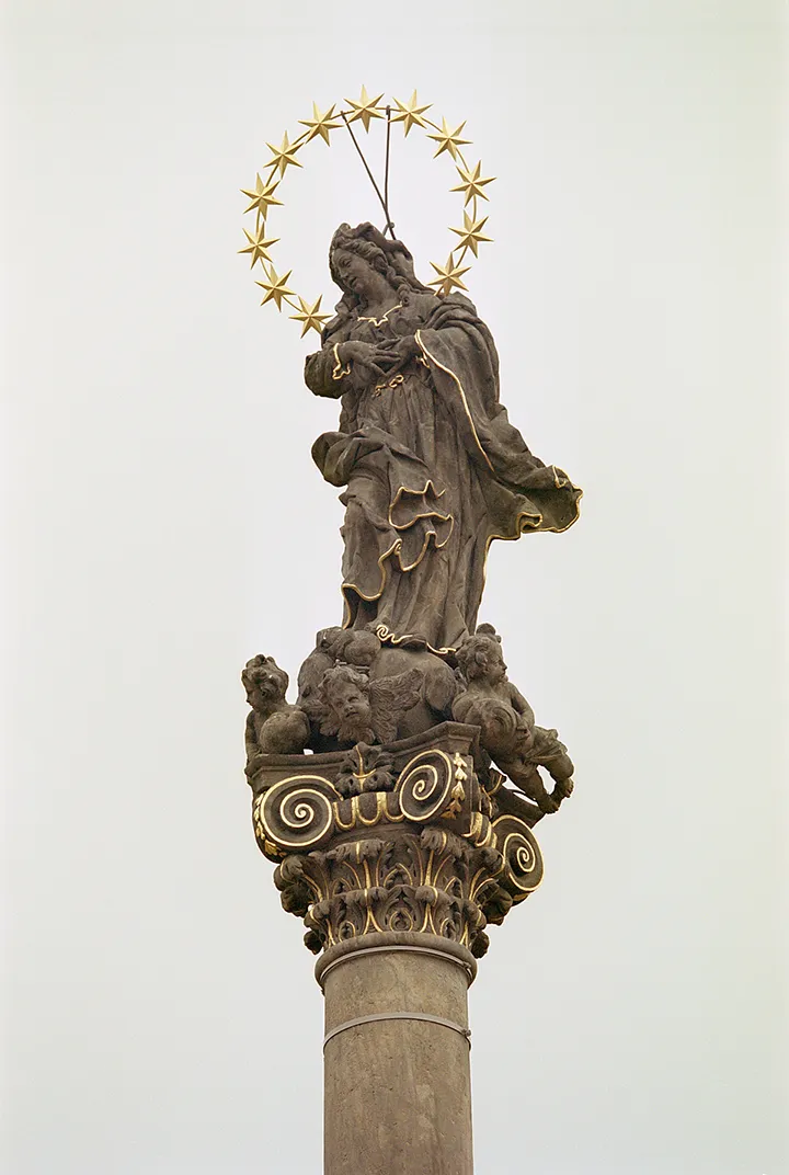 Sloup je příkladem vrcholného barokního sochařství a architektury. Je zhotoven převážně ze světlešedého pískovce. Sochy a architektonické detaily jsou místy doplněny zlacením, zejména v oblasti atributů světců a lemu roucha Panny Marie.