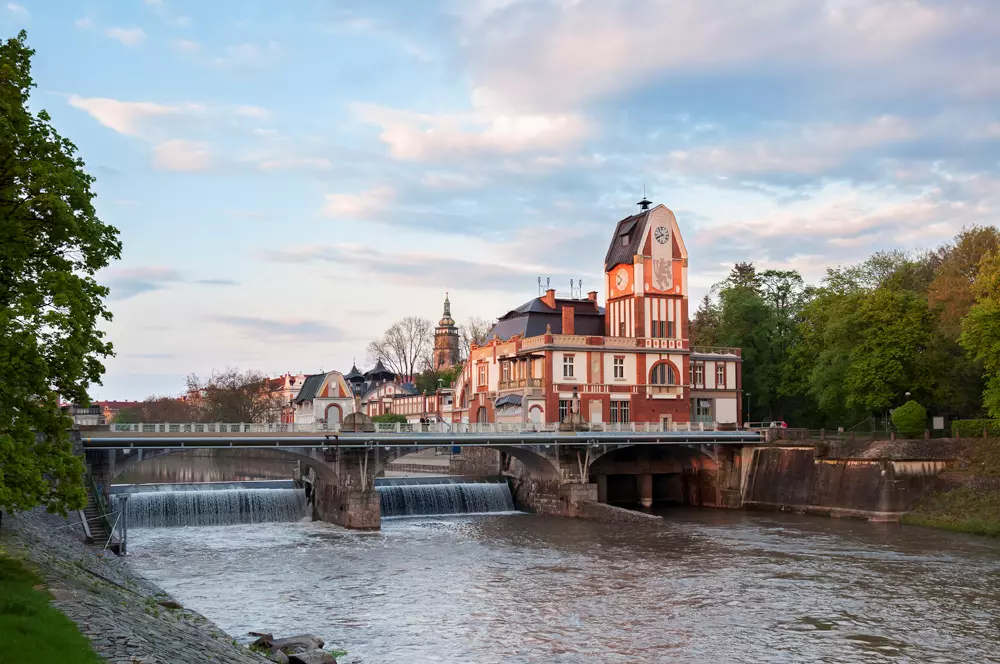 V letech 1922–1924 byla elektrárna rozšířena o přístavbu směřující do Křižíkovy ulice. Autorem architektonického návrhu byl známý architekt vodních staveb František Sander. Budova elektrárny vyniká charakteristickými exteriérovými prvky, které z ní činí jednu z dominant města. Fasádu zdobí cihlové lizény, stupňovité korunní římsy a velká industriální okna. Další výrazné prvky zahrnují pískovcové sloupky, balustrády či mansardové střechy. Celou fasádu doplňuje kombinace hladké a hrubé omítky se zdobením z režného zdiva. V současnosti vyrábí elektrárna energii pro střed města.